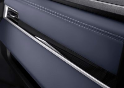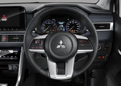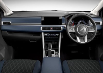 Desain konsol tengah yang futuristik menciptakan lingkungan berkendara yang modern dan dinamis dengan detail trim logam yang melintang di seluruh dashboard, membentuk permukaan melengkung yang indah dan minimalis.