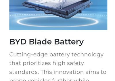 BYD DOLPHIN dilengkapi dengan platform baru BYD e-Platform 3.0 yang dirancang khusus untuk kendaraan listrik murni. Memaksimalkan keunggulan kecerdasan, efisiensi, keamanan, dan estetika, e-Platform 3.0 bertujuan untuk meningkatkan kinerja kendaraan energi baru (NEV) dalam hal keamanan dan jangkauan mengemudi pada suhu rendah serta memperbaiki pengalaman mengemudi cerdas, guna membangun kendaraan listrik cerdas baru yang lebih efisien dan aman.